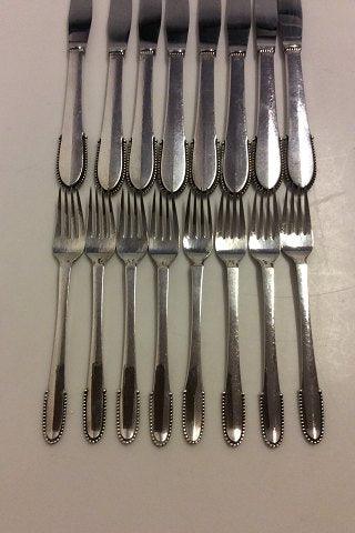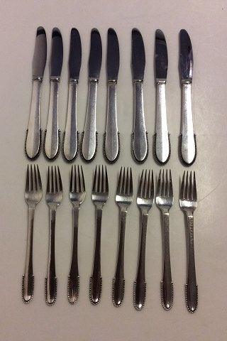 Georg Jensen Sterling Silver Beaded Lunch flatware set 16 pieces.