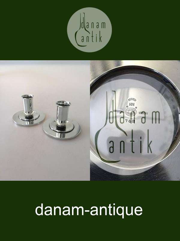 Georg Jensen Sterling Silver Pair of Candlesticks No 748. Measures 2 1/4" x 3 1/4".