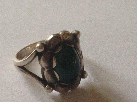 Georg Jensen Sterling Silver Ring with Green Stone No 24. In perfect condition. Ring size 56.