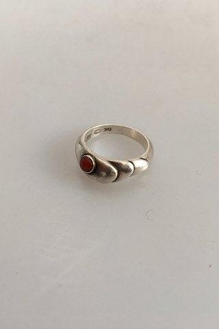 Georg Jensen Sterling Silver Ring No 362 ornamented with red stone.