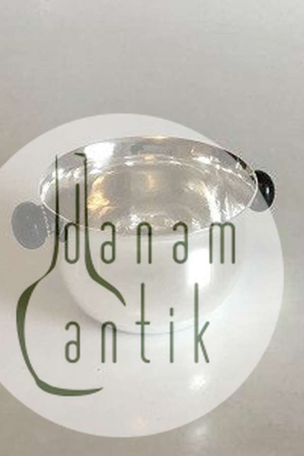 Georg Jensen Sterling Silver Sugar Bowl with Handles of Ebony No 80 B. Measures 5.5 cm / 2 11/64 in. x 8.6 cm / 3 25/64 in. dia. Weighs 110 g / 3.90 oz.