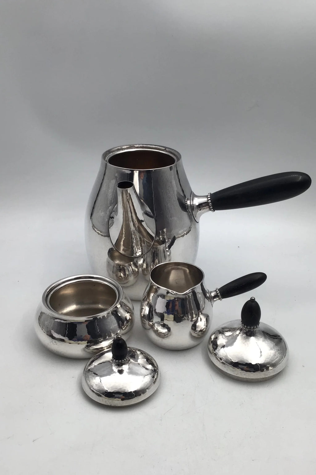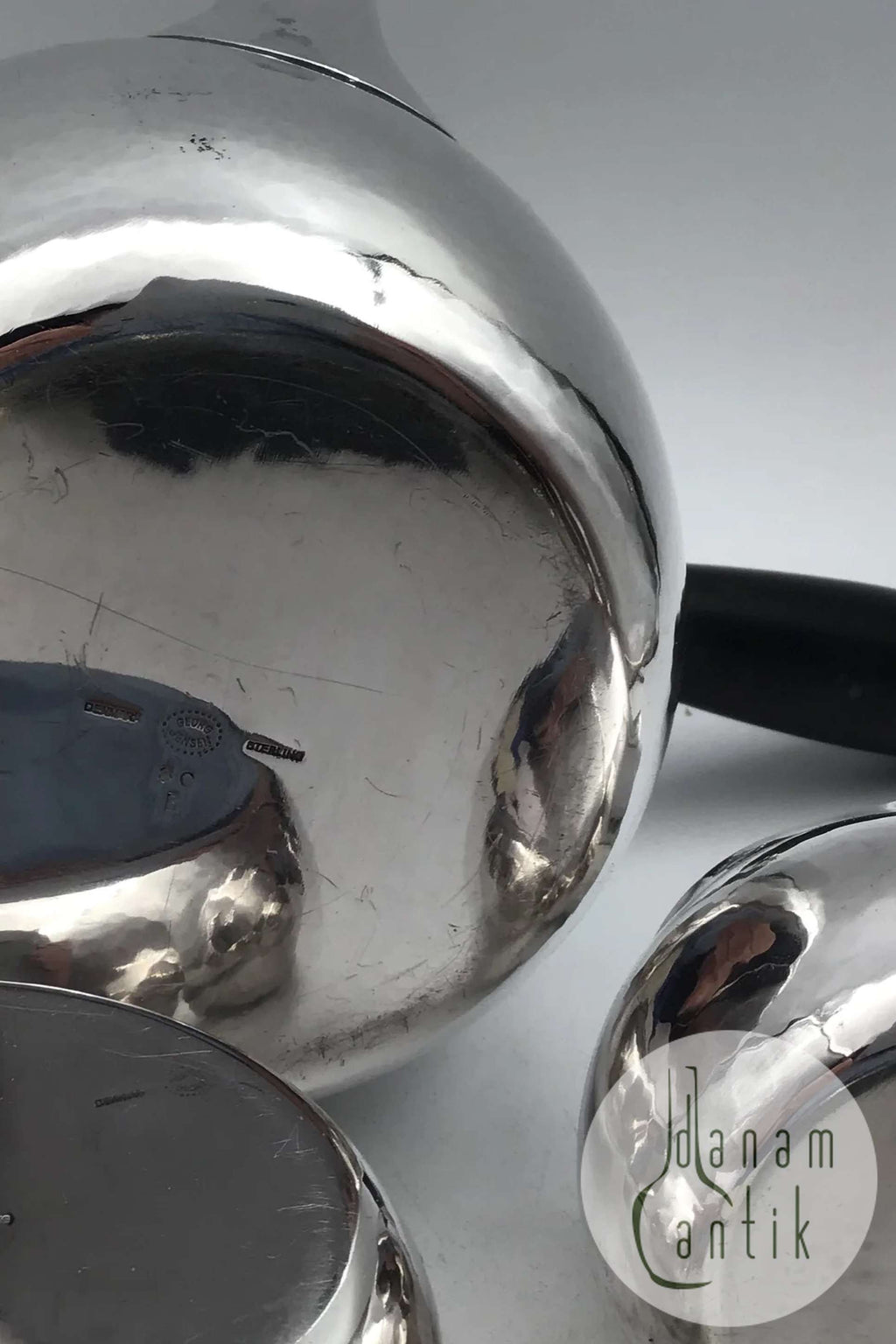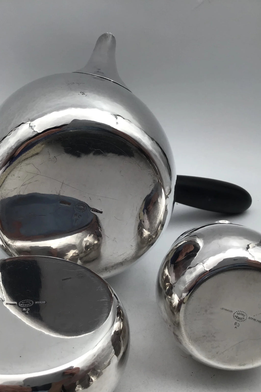 Georg Jensen Sterling Silver Coffee Set No. 80 The set consists of Coffee Pot 80 B H 19 cm (7.48 inch) Weight 577 gr. (20.35 oz) Cream Jug 80A H 6.5 cm (2.55 inch) Weight 105 gr. (3.7 oz) Sugar Bowl 80A H 8 cm (3.14 inch) Weight 162 gr. (5.7 oz)