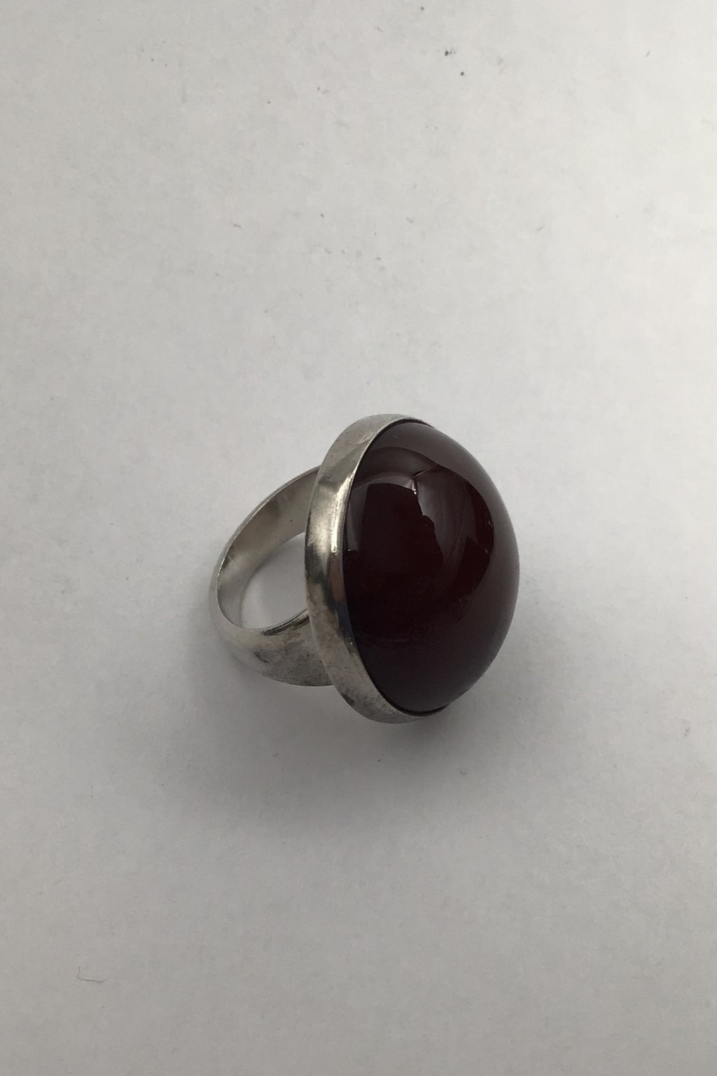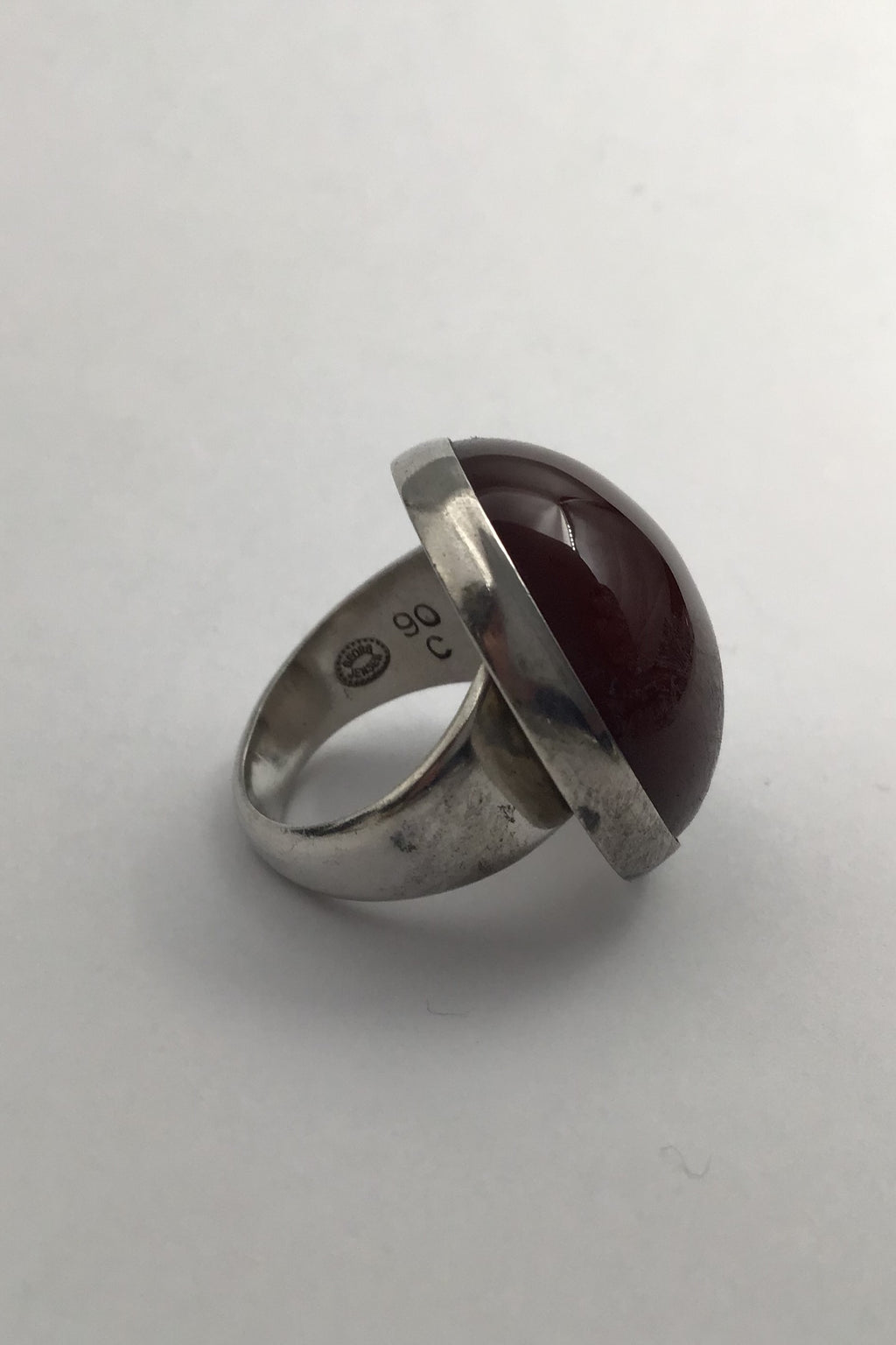 Georg Jensen Sterling Silver Ring No. 90 C (Reddish Brown Agate) Measures Diam 2.5 cm (0.98 inch) Ring Size 49 (US 5) Weight 14.8 (0.52 oz)