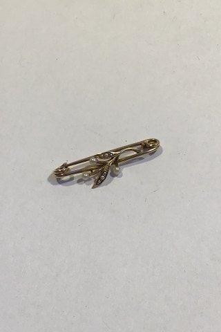 Gold Brooch with Pearls Measures 3.7 cm(1 29/64 in) Weight 2.4 gr/0.08 oz