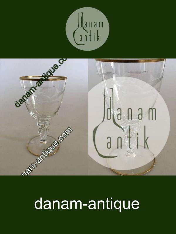 Lyngby Seagull Claret Glass from Lyngby Glassworks. 13.3 cm H. Glass Service with gold on rim and foot with ingraved seagull. Designed to match Bing & Grøndahl's Seagull Dinner Service