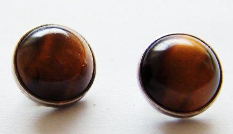 N.E. From Sterling Silver Earclips with Tigereye. Measures 1,6cm and is in good condition. Weigs 8,7g / 0,30oz