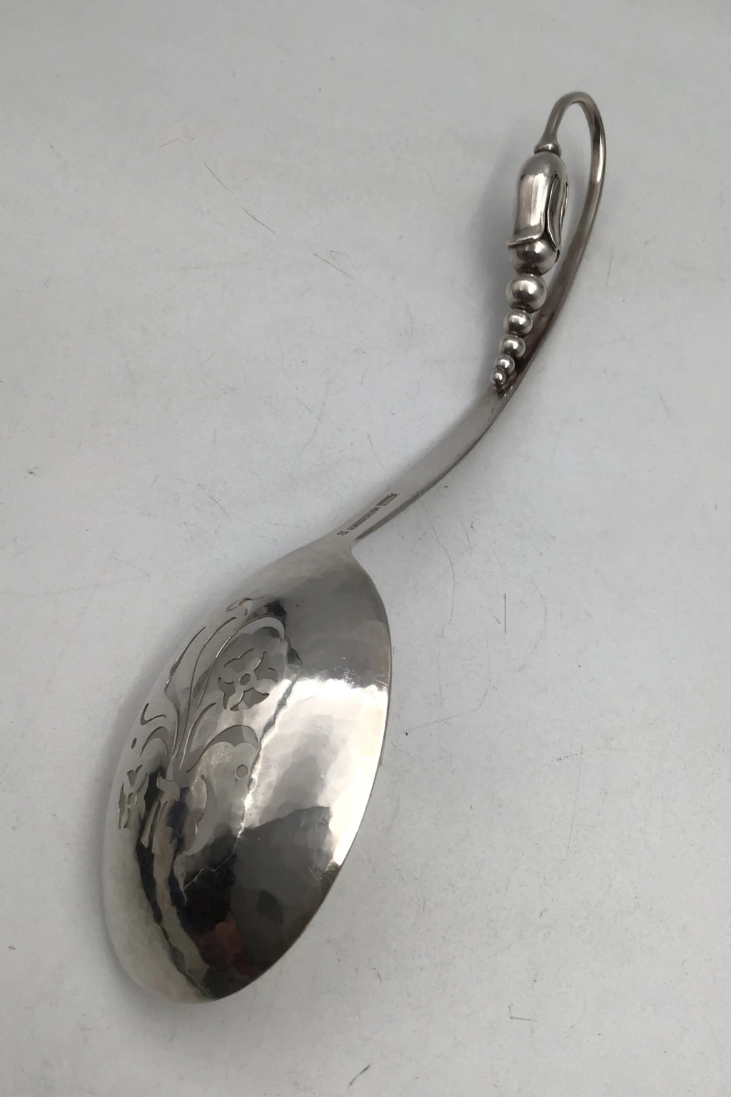 O. V. Mogensen Sterling Silver Ornamental Berry Spoon No. 35 Measures 24 cm (9.44 inch)
