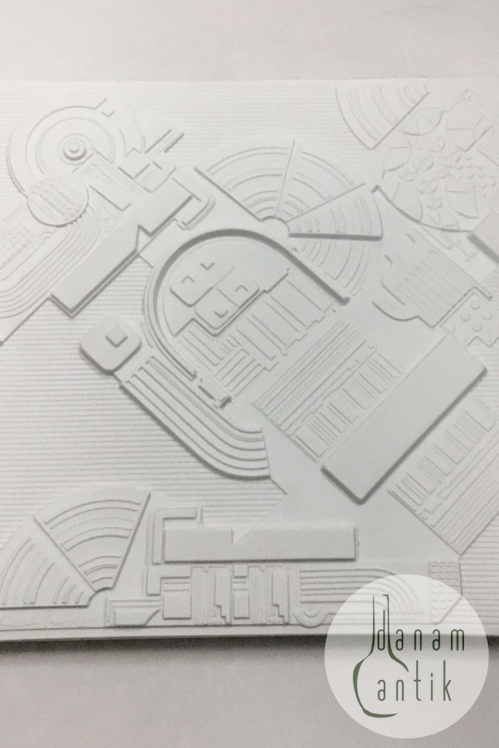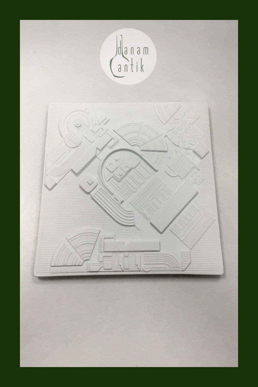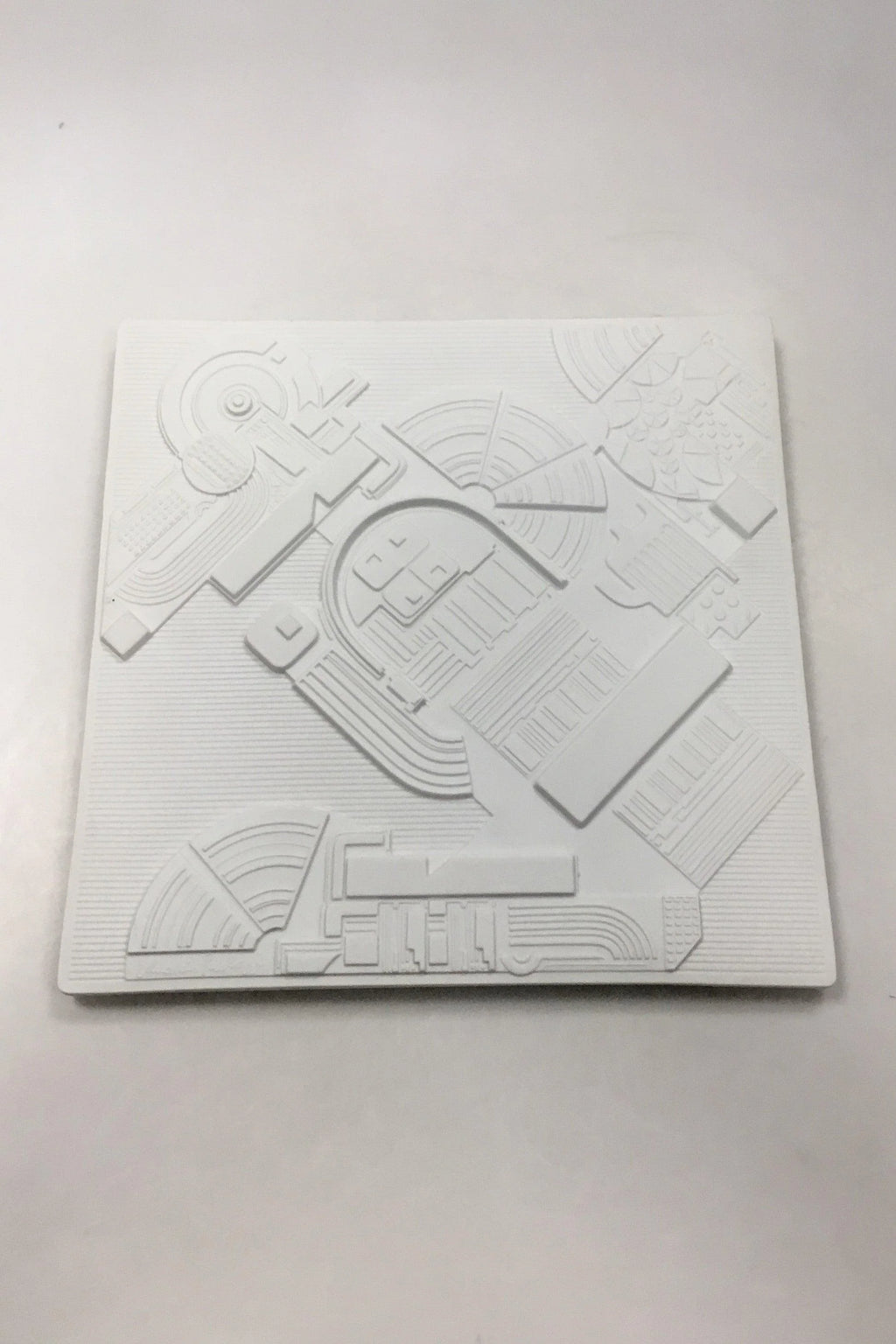 Rosenthal Year platte 1978 No 3000/900. Designed by Eduardo Paolozzi. Geometric shapes in relief bisquit. Measures 34.5 x 34.5 cm (13 37/64 x 13 37/64 in).