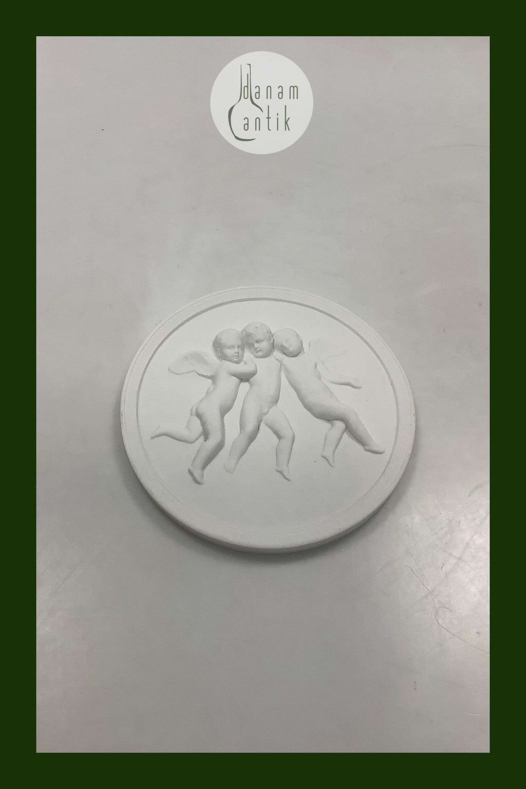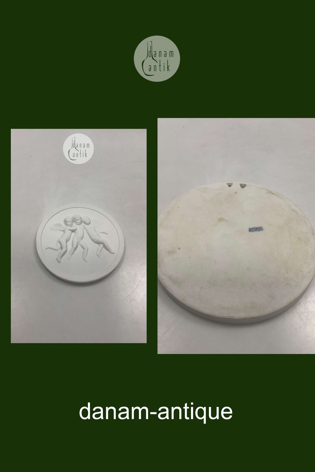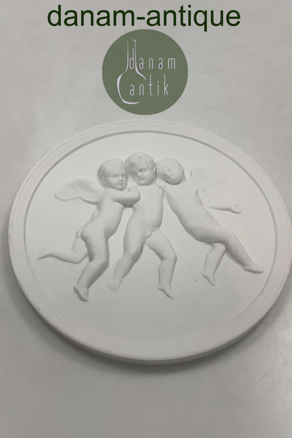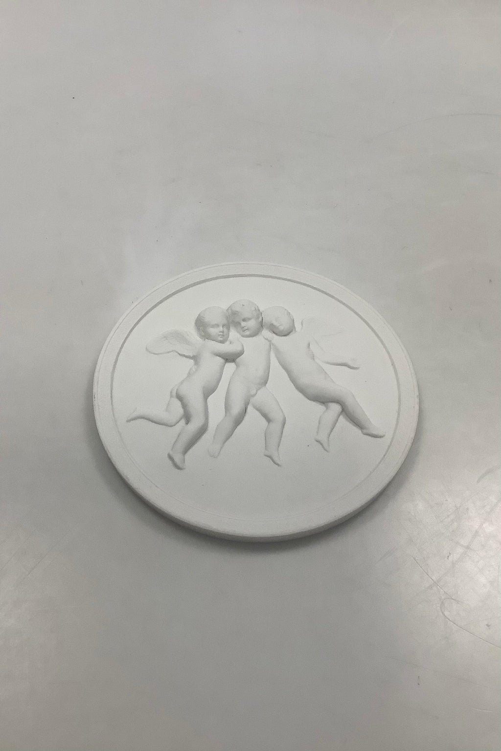 Royal Copenhagen Biscuit Plate Three Floating Angels. Copy from 1842 by Th. Mule after Thorvaldsen's original from Rome 1805-07. Measures 14,5cm