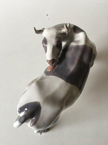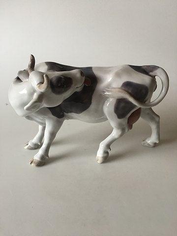Royal Copenhagen Figurine Cow licking No 446. Measures 25cm and is designed by Lauritz Jensen.