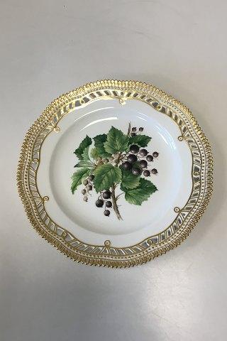 Royal Copenhagen Flora Danica Fruit Plate No 429/3554. Measures 22.7 cm / 8 15/16 in. 1st Quality. Pierced Border. Blackcurrant. From 1962