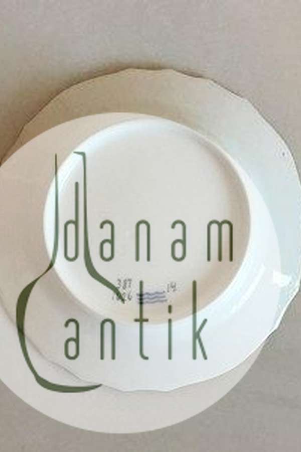 Royal Copenhagen Cake Plate White Curved with serrated Gold edge (Pattern 387 / Josephine) No 1626