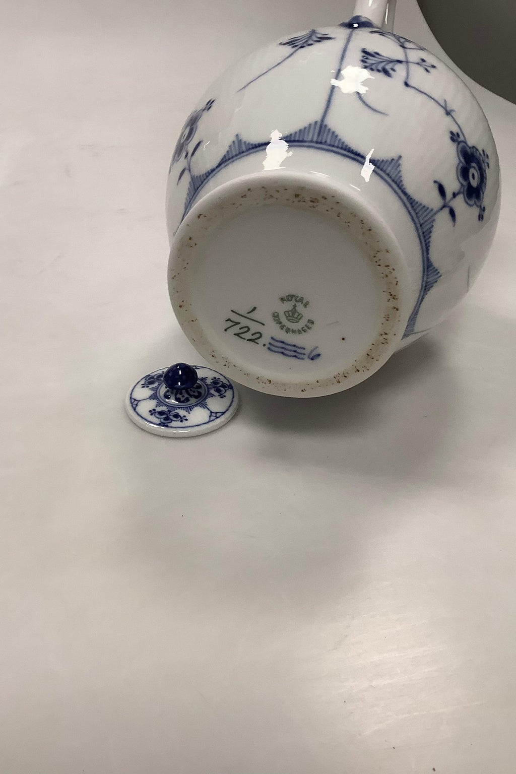 Royal Copenhagen Blue Fluted Half Lace Chocolate Jug No 722. Measures 23 cm / 9 1/16 inch. In fine condition and 1st Quality