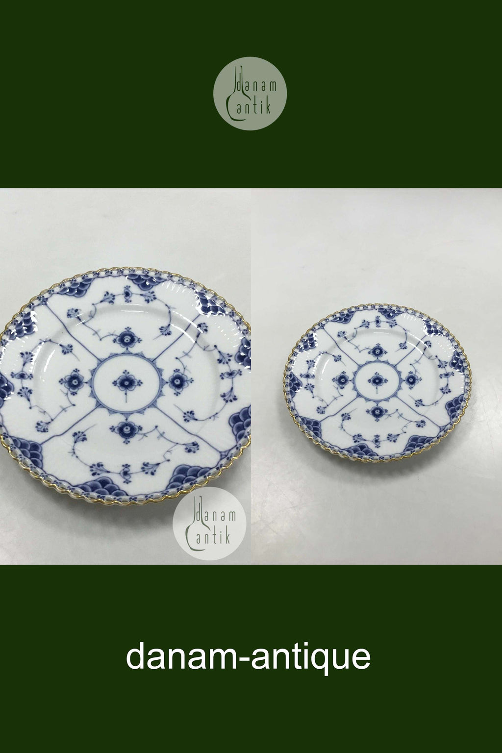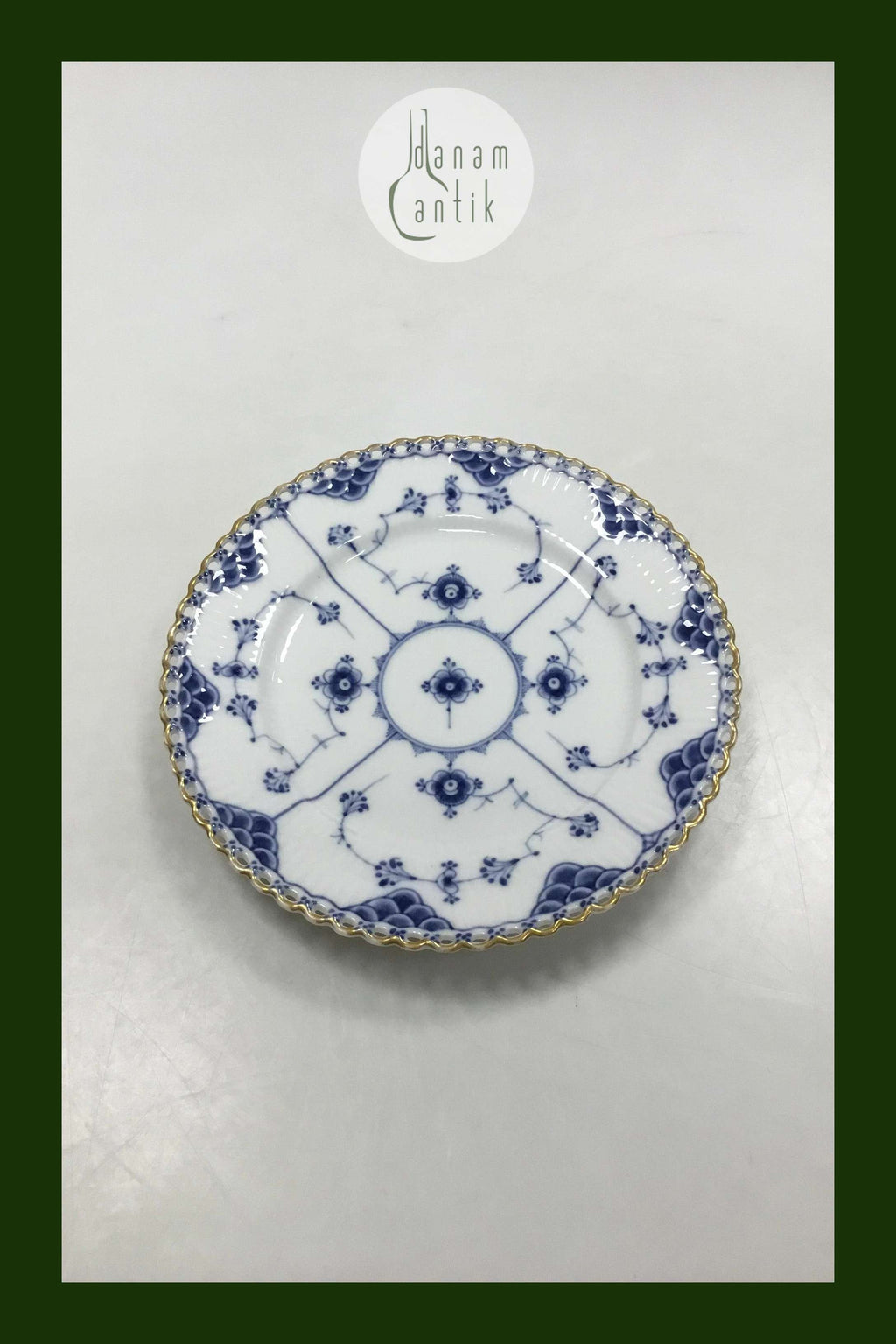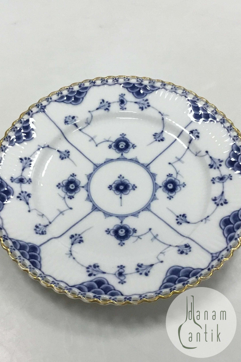 Royal Copenhagen Blue Fluted Full Lace Lunch Plate with Gold No 1086. Measures 19.5 cm / 7 43/64 in. Light wear and small chips to rim.