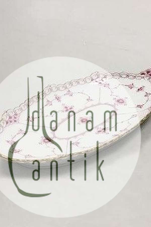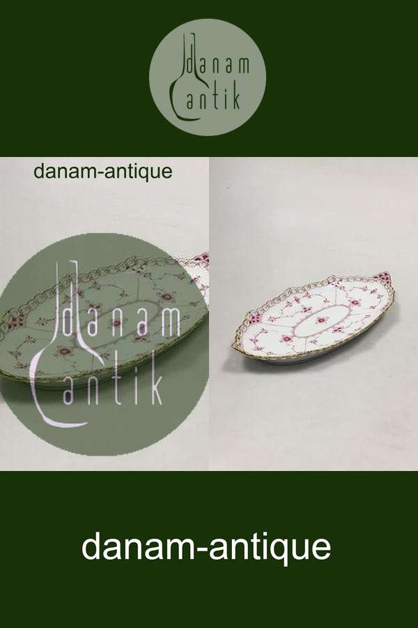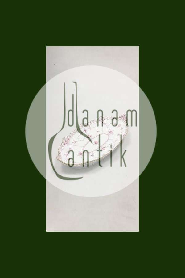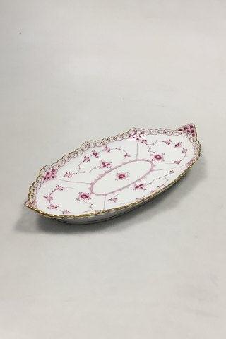 Royal Copenhagen Blue Fluted Red Ruby/Pink with Gold Edge Full Lace Small Oval Dish No 2/1115. Measures 25 cm / 9 27/32 in. x 13 cm / 5 1/8 in.