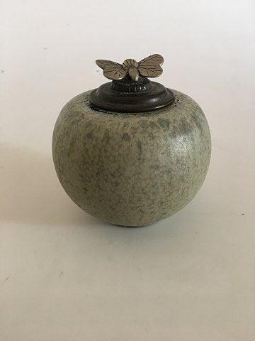 Royal Copenhagen Stoneware Vessel No 47/4A with Bronze Lid- The vase is marked 47/4A and the Lid T4A In great condition. Bronze lid with Fly made of tin. Measures 9 cm H (3 35/64") without lid on. Lid by Georg Thylstrup