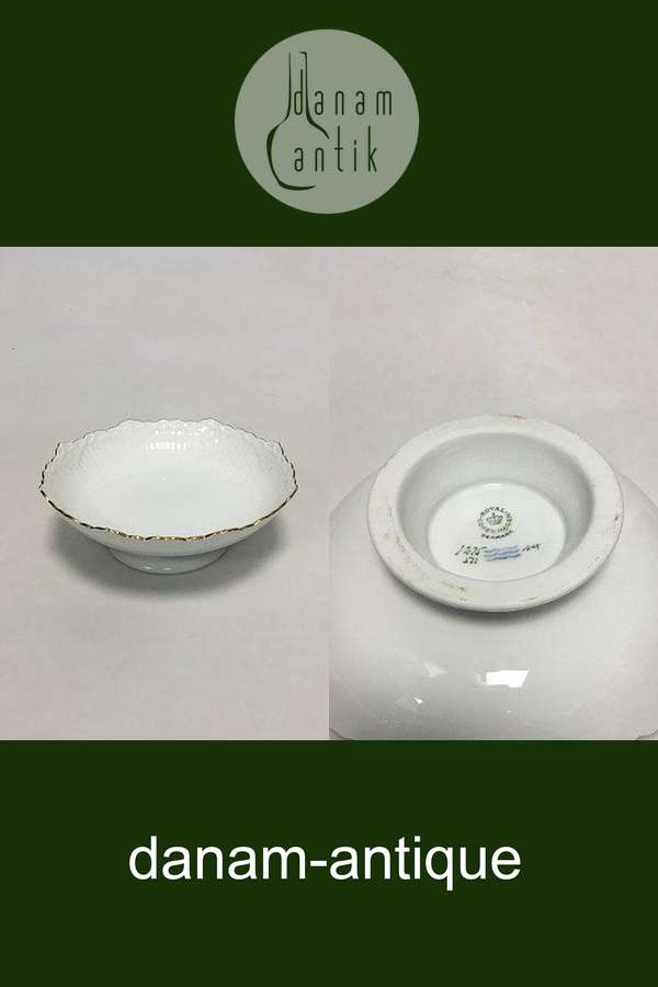 Royal Copenhagen Tradition White Half Lace w. Gold Small Bowl on foot No No 511. Measures 6 cm / 2 23/64 in. x 17.5 cm / 6 57/64 in. dia.