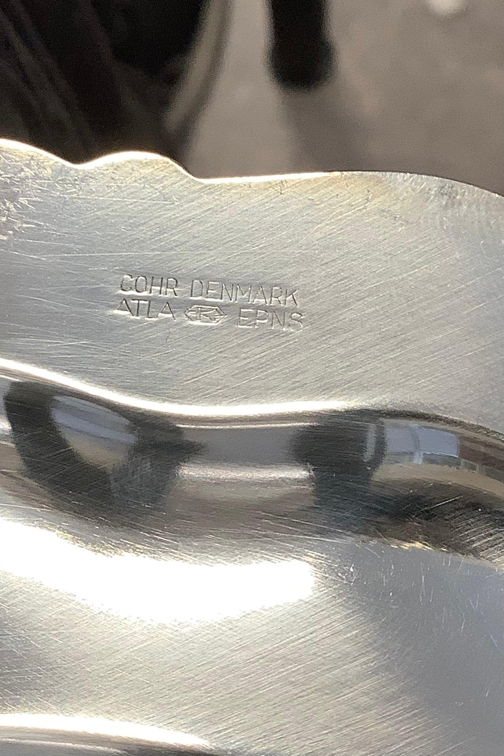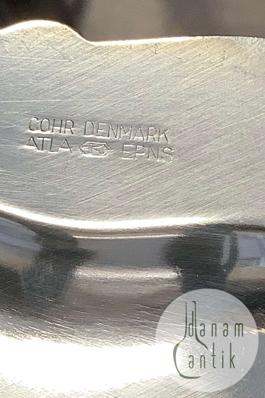 Carl M. Cohr's Sølvvarefabriker A/S was a Danish silverware factory in Danmarksgade 9 in Fredericia. Ditlev Madsen Cohr (born 1829 in Fredericia, died 1882) started on April 25, 1860 as a goldsmith in Fredericia. In 1887, his son, Carl M. Cohr (1862-1925), took over the business, gradually expanded the workshop with machines, made corpus works from 1892 and thereby laid the foundation for the art-industrial business, which in 1906 was transformed into a limited company with Carl M. Cohr as managing director and main shareholder and manufacturer Ditlev von Voss as chairman of the board. In the same year, the late manufacturer Fleron's silversmithy in Copenhagen was taken over. In 1940, this was moved to Fredericia, while the office and warehouse for Copenhagen remained in the company's property at Løvstræde 6. Cohr associated various well-known designers with the factory, including Knud V. Engelhardt. H.P. Jacobsen, who was hired in 1926, was the artistic director for 40 years. Silversmith Hans Bunde had a decisive influence on Cohr's production in the 1950s. In 1950, the company employed around 350 people. Until 1922, the company's products (cutlery, dishes, bowls, pitchers, candlesticks, etc.) were only made in real silver. In that year, the production of silver-plated products began under the name ATLA silver plate. In 1931, the company also began producing stainless steel products, which were used in many Danish homes and canteens. From 1925, the company had a fairly significant export, especially to the rest of Scandinavia. At the same time, the company achieved recognition at the world exhibitions in Brussels 1935 and Paris 1937. In 1950, the board of directors consisted of Consul Einar Cohr (b. 1901), who is chairman, Consul Mrs. Ellinor Cohr (b. 1901) and Consul Harald Lützen (b. 1884). Carl M. Cohr was succeeded as director in 1925 by Harald Lützen (admin.), Osvald Møller (techn.) and Einar Cohr (mercantile). Einar Cohr took over the management in 1959. He designed cutlery and church silver, among other things. Einar Cohr died in 1970 and the company was sold to Count Jens Krag-Juel-Vind-Frijs. Horsens Sølvvarefabrik and Dansk Kronesølv in Slagelse were then taken over by Cohr, and a new factory building was built and inaugurated in 1985. However, in September of the same year, the company went into receivership, but Keld Poulsen sought to continue the business. However, the factory had to close on August 20, 1987.