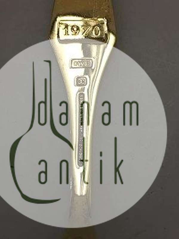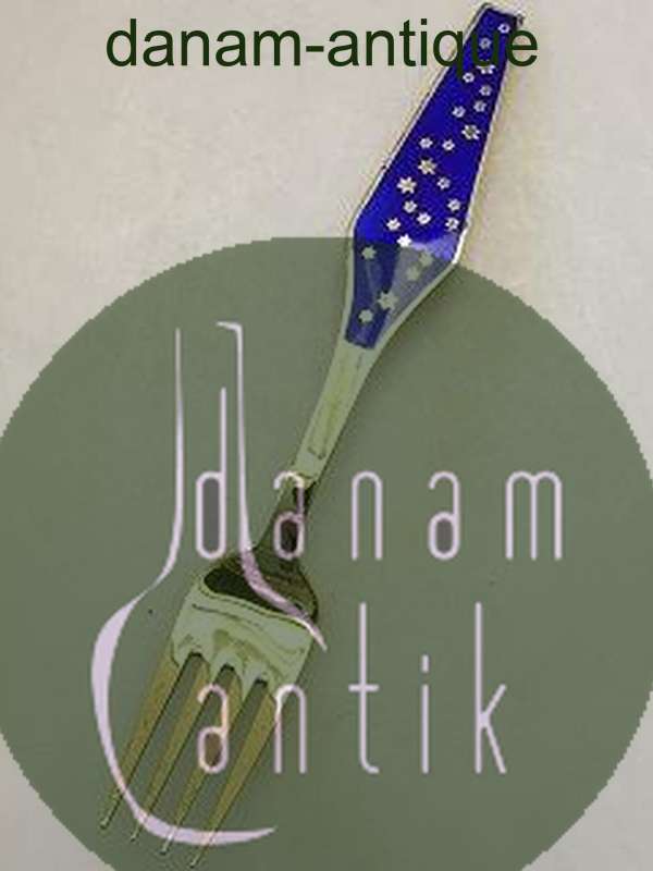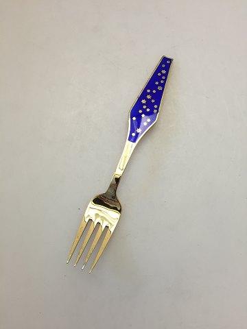 Sorenco Christmas Fork 1970 made of gilded sterling silver with blue enamel. Measures 16,6cm / 6 1/2".