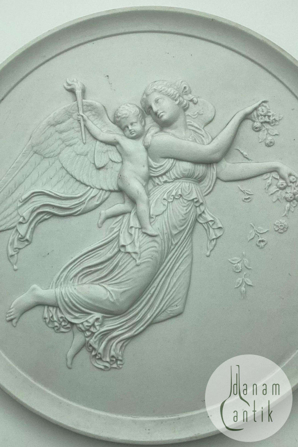 Bertel Thorvaldsen: Bing and Grøndahl Biscuit Plate "Dagen". Copy from 1840 after Thorvaldsen's original from Rome 1815. Measures 28,5cm (11.22 inch). Made in the late 19th century.