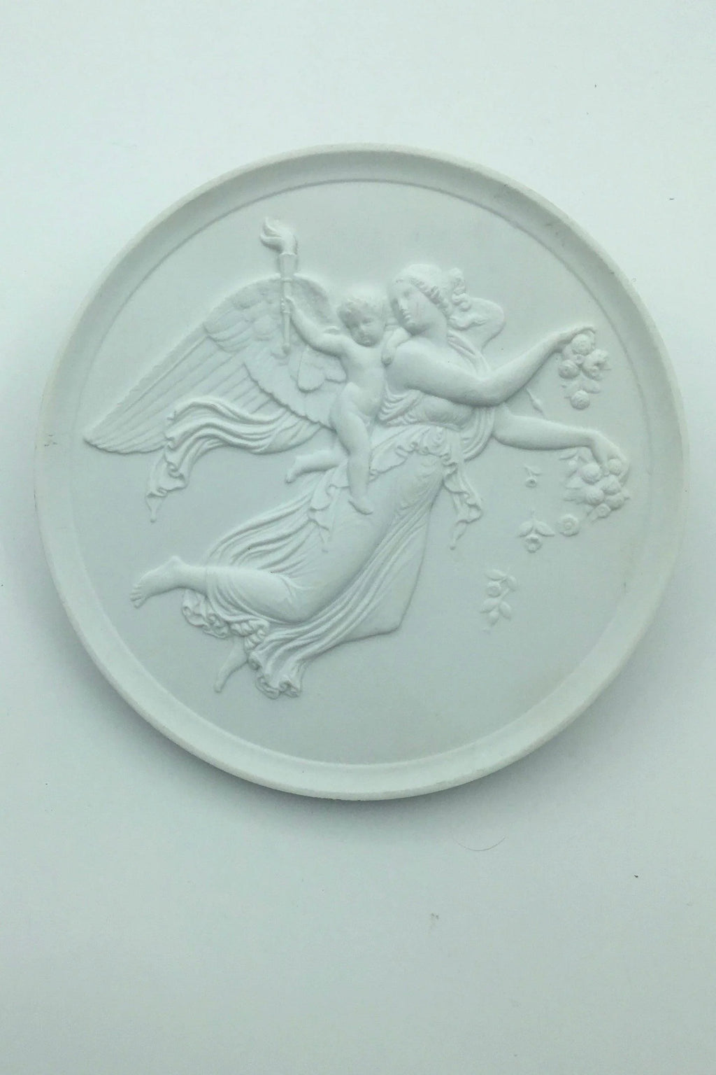 Bertel Thorvaldsen: Royal Copenhagen Biscuit Plate "Dagen" No 86. Copy from 1840 after Thorvaldsen's original from Rome 1815. Measures 14,5cm (5.70 inch). Made after 1950.