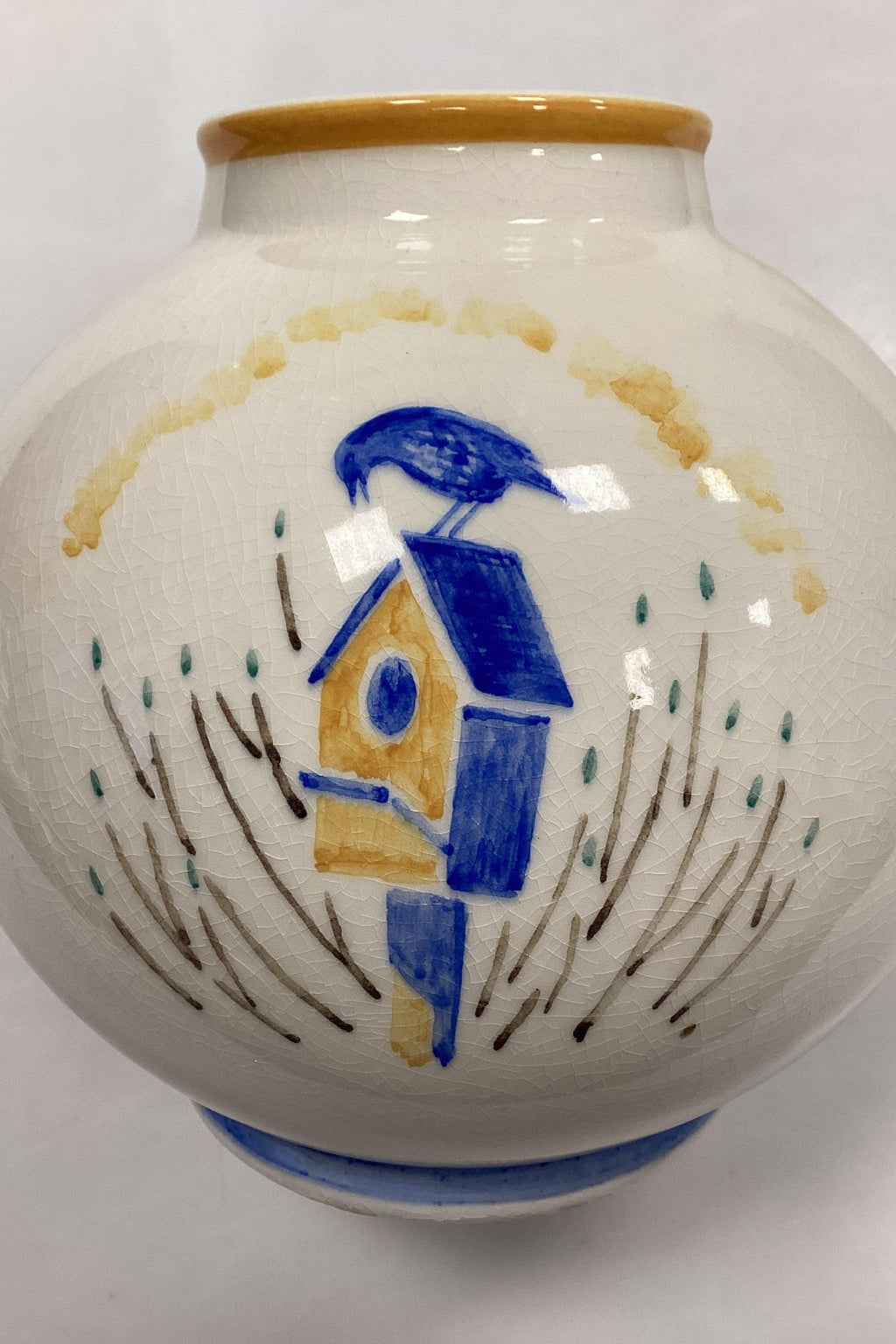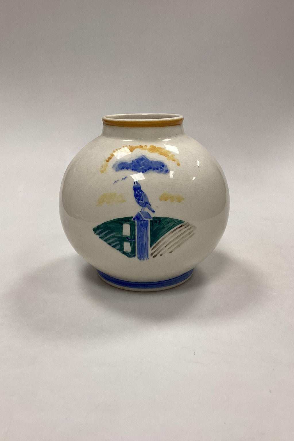 Aluminia Unika Vase af Kai Lange med motiv af Fugl Stær