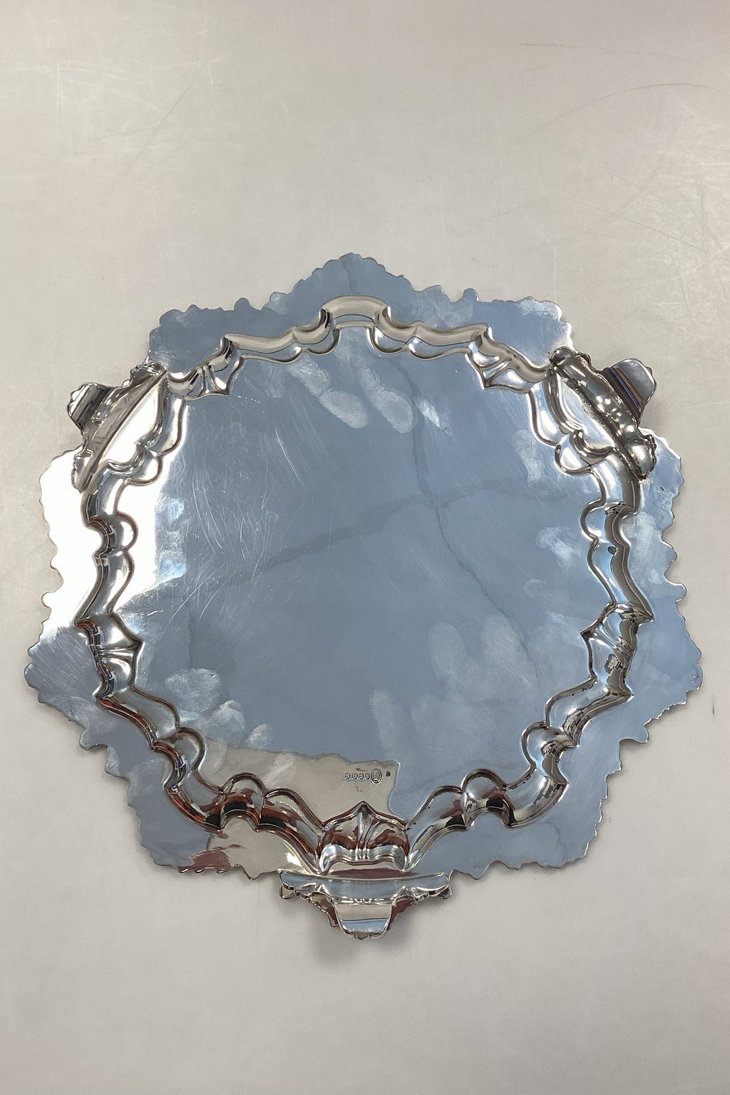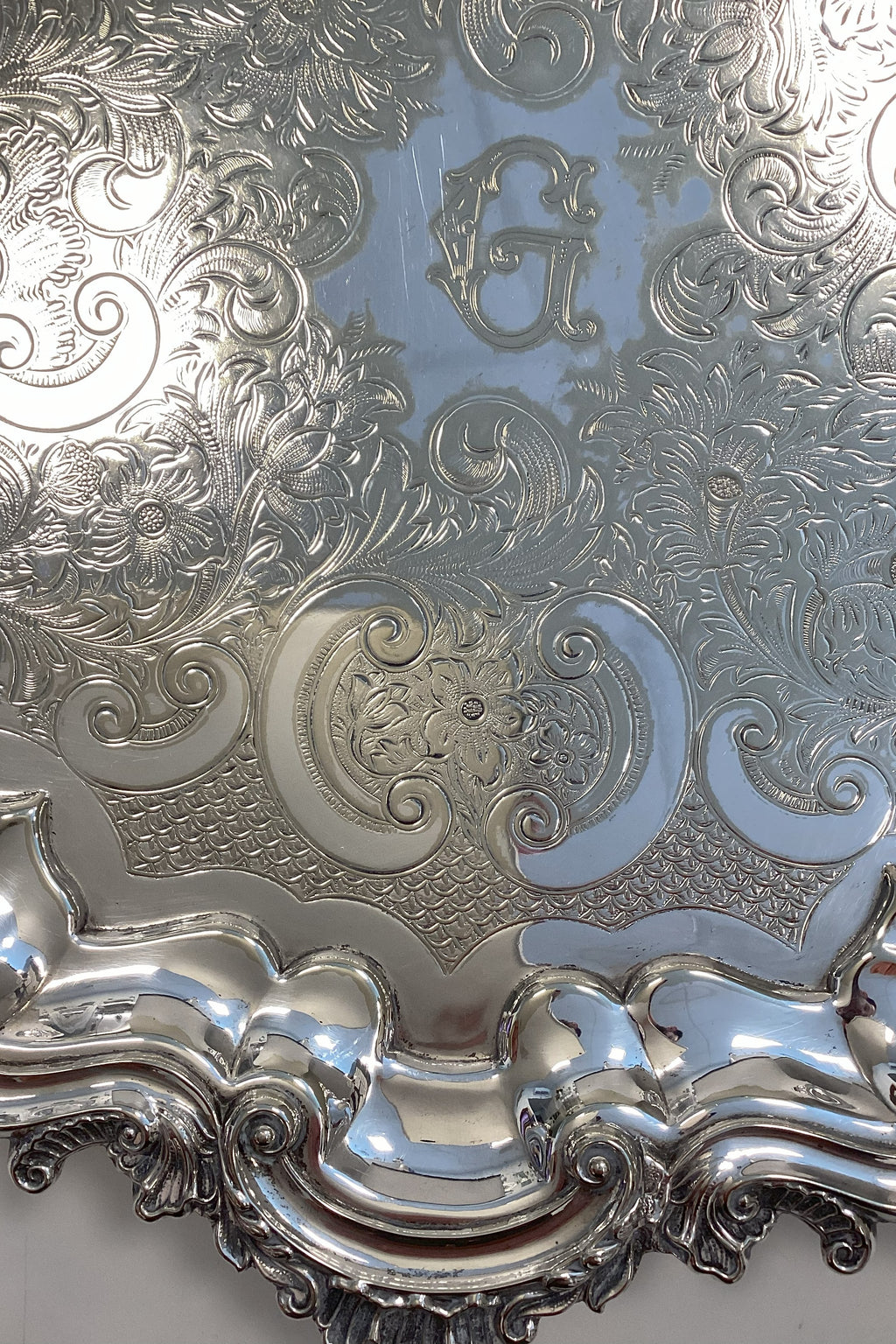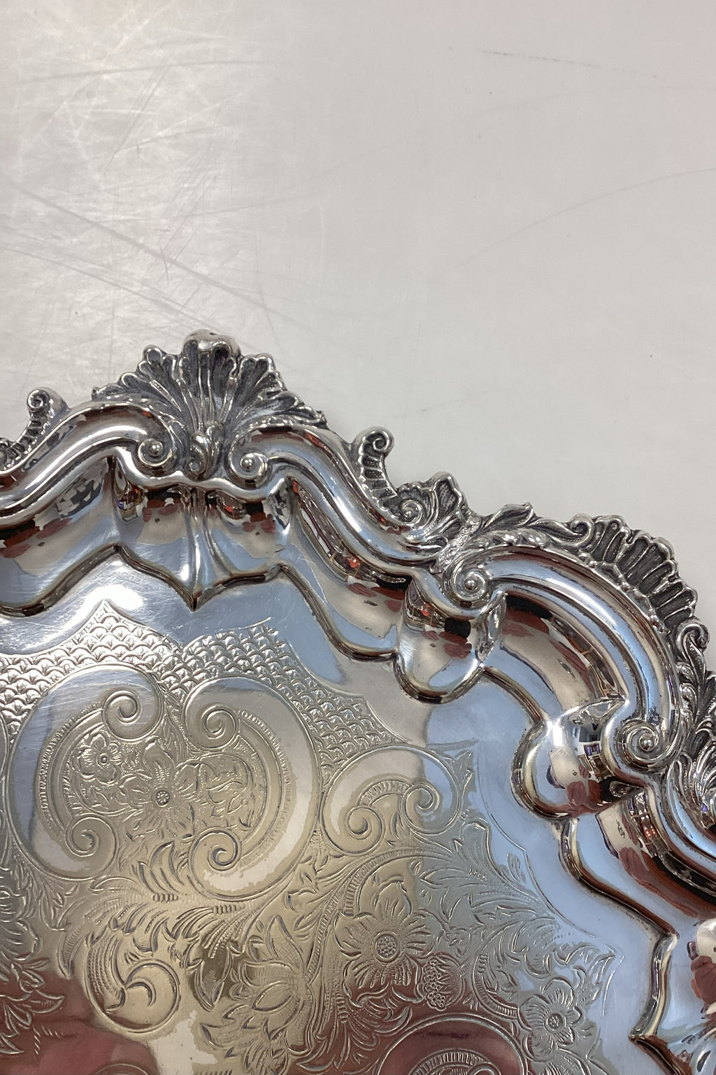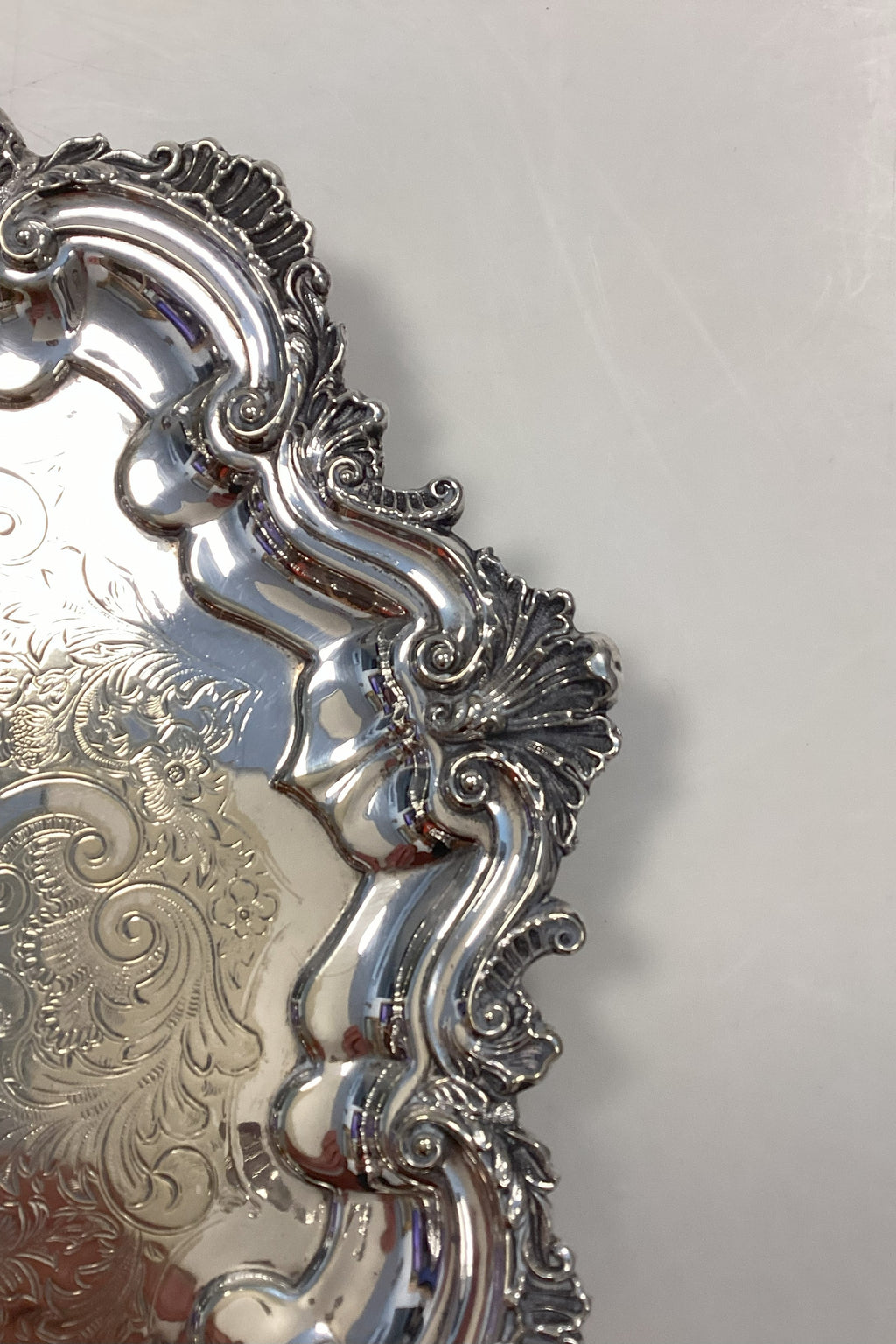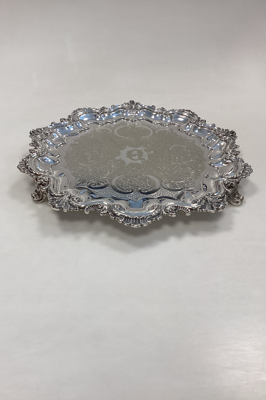 Ornamenteret Engelsk Sølvplet Serveringsbakke med ben, Fabrikeret i England.
