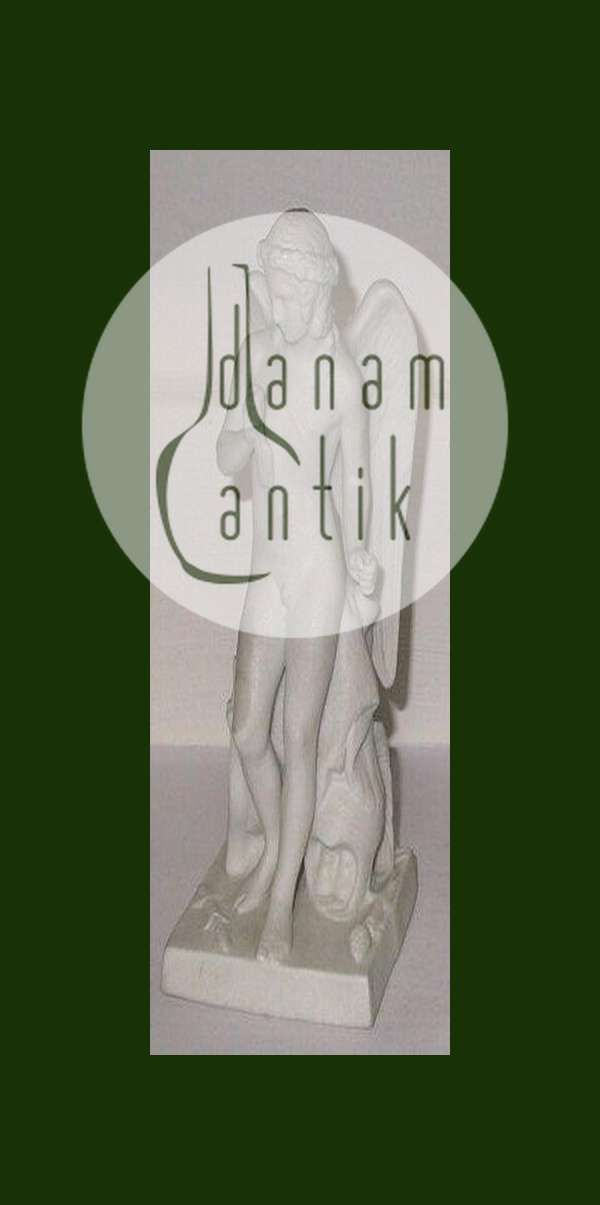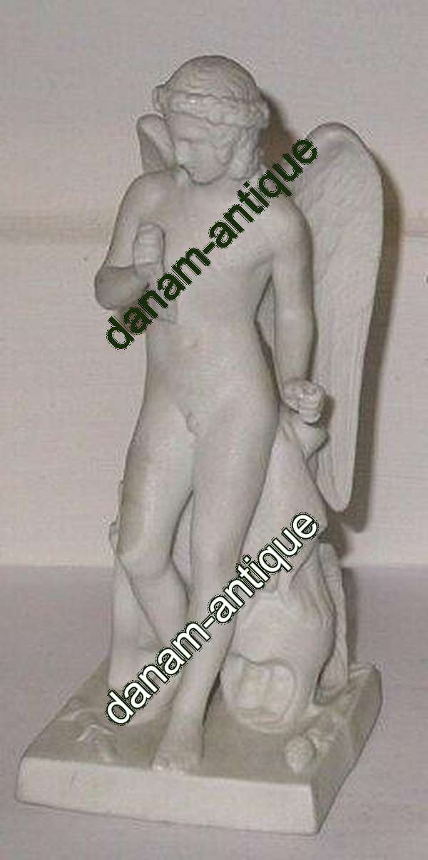 ビスクで作られた勝利のキューピッドのフィギュア。Bertel Thorvaldsen for Bing & Grøndahl ca. 1900年頃。矢の外側の部分が折れており、左手に持っている杖も失われています。高さ15.5cm。