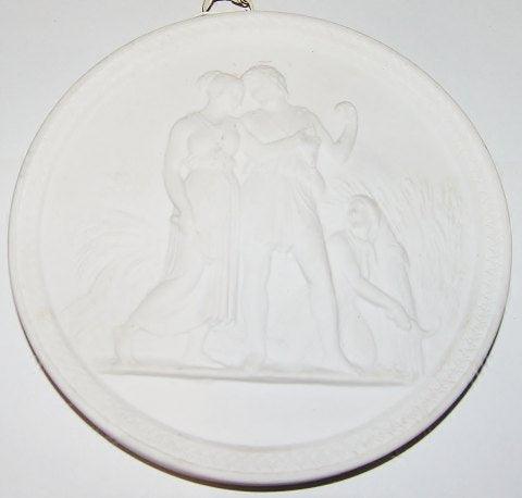 ロイヤルコペンハーゲン ビスケットプレート 人生の時代-青春と夏の時代 No.1171836年にローマで制作されたトルヴァルドセンの原画を、1842-43年にクリスチャン・クリステンセンがコピーしたものです。寸法 14cm