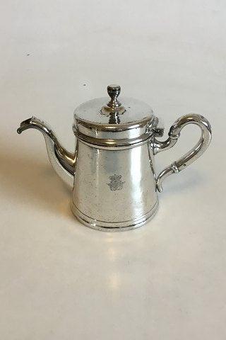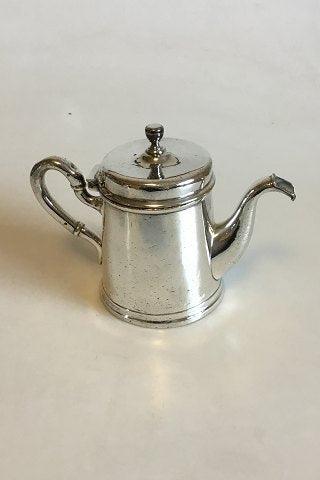 シルバープレート製の水差し、ヒンジ式の蓋、DSBのロゴ入り。F.ブロッホのスタンプ。寸法14cm。