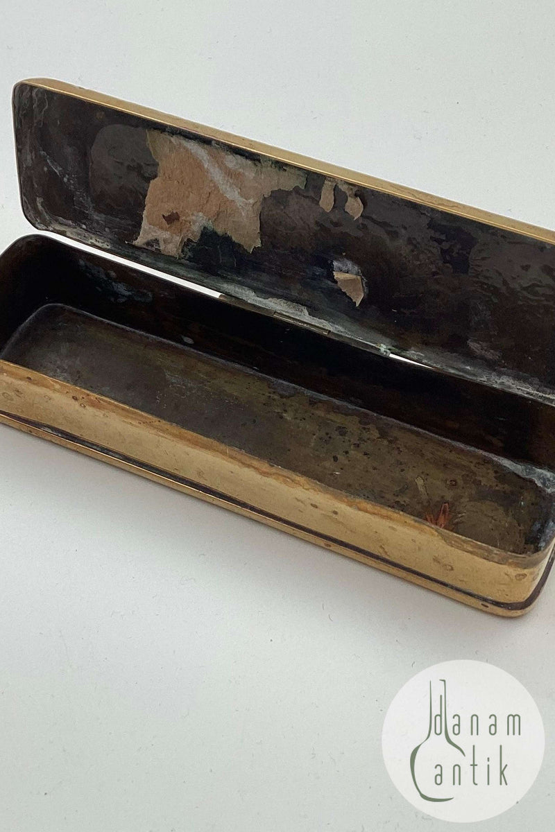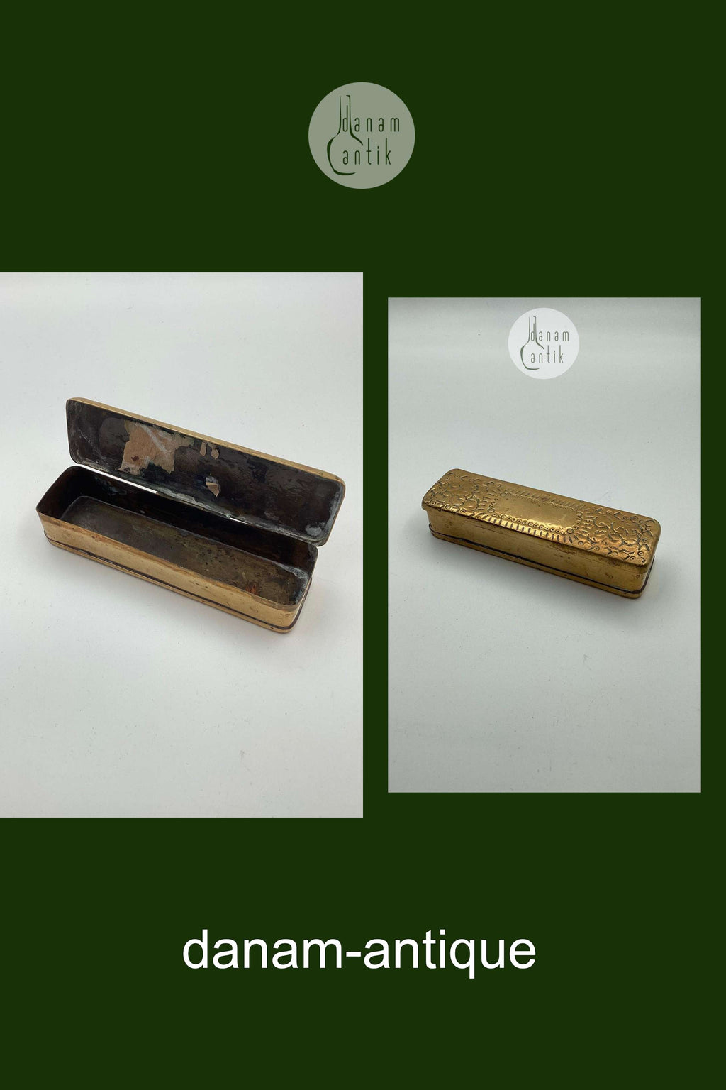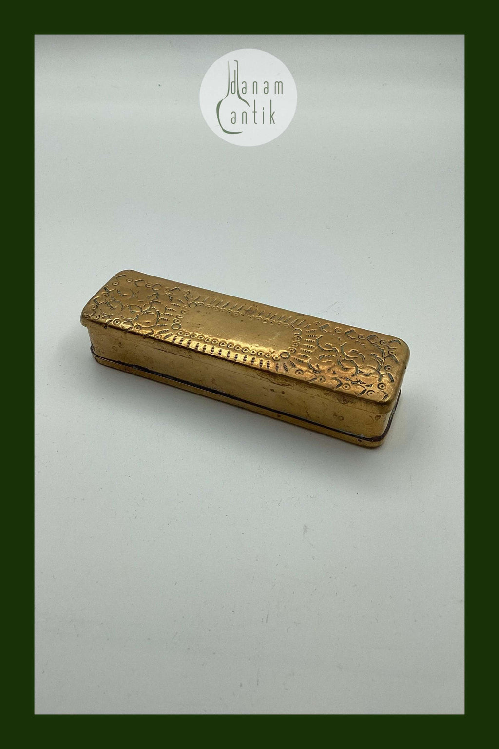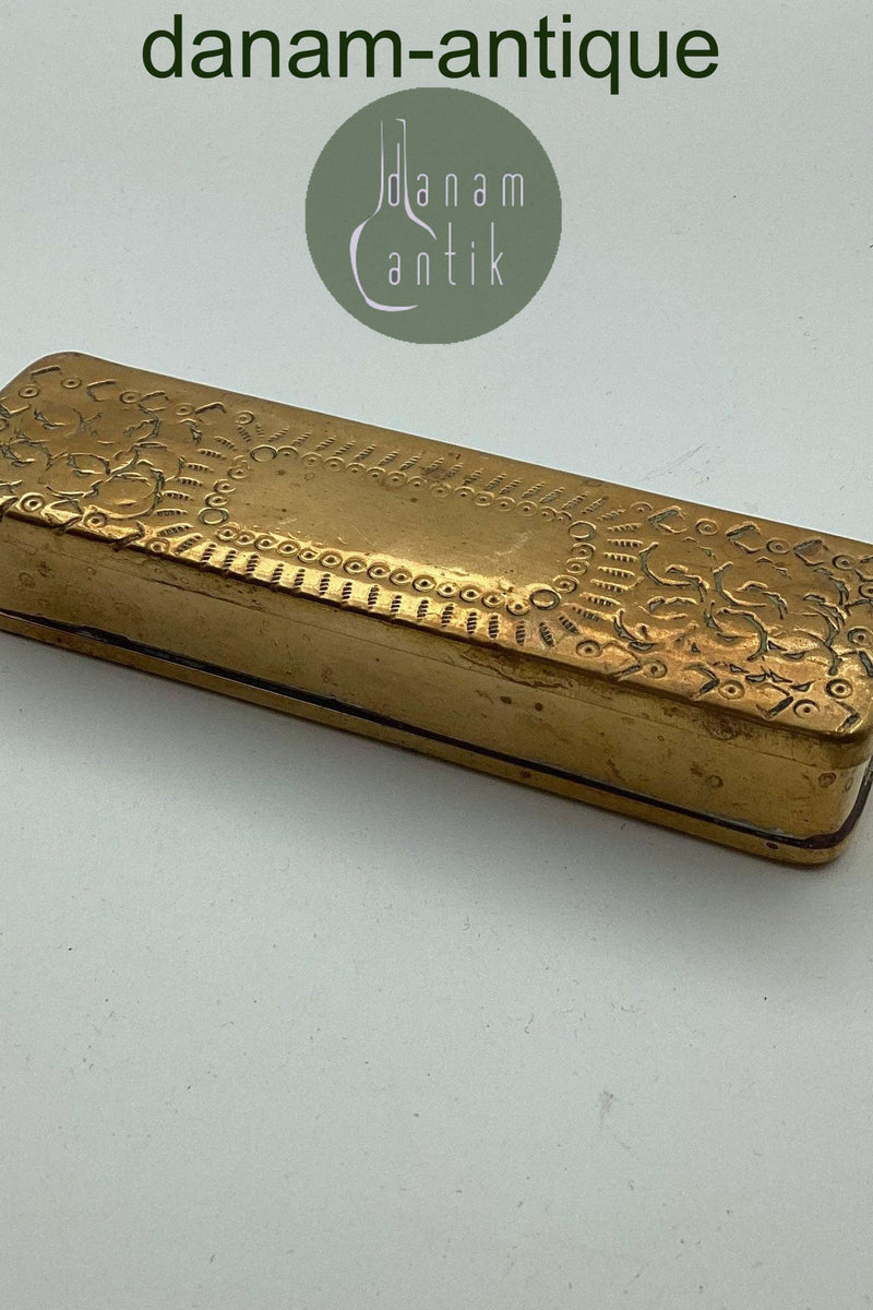 真鍮製のスナッフボックス。19世紀初頭にオランダで作られた。蓋に装飾が施されています。良好な状態です。サイズ:高さ3cm、長さ15cm、幅4,50cm(1.77インチ