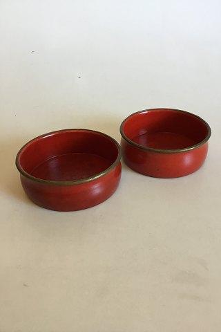 英国製張り子ボトルトレイ、金属リム付き、レッドラッカー仕上げ。1840年頃。直径12.5cm。x 4,5 cm。