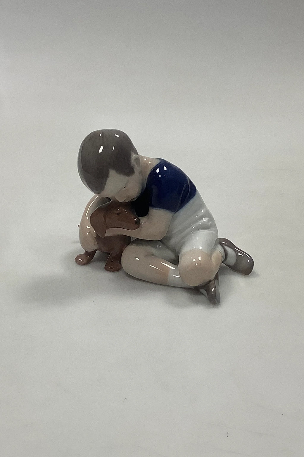 Royal Copenhagen / Bing og Grøndahl 1951 Figur Dreng med gravhund No. 440Måler 13 cm x 10 cm og er i perfekt stand.
