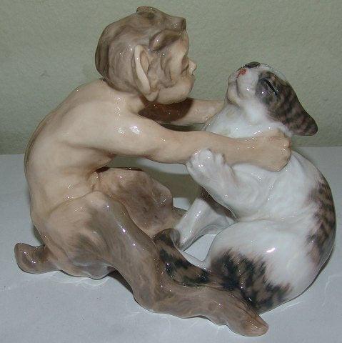 ロイヤルコペンハーゲン フィギュア ファウン・ウィズ・キャット No 1036