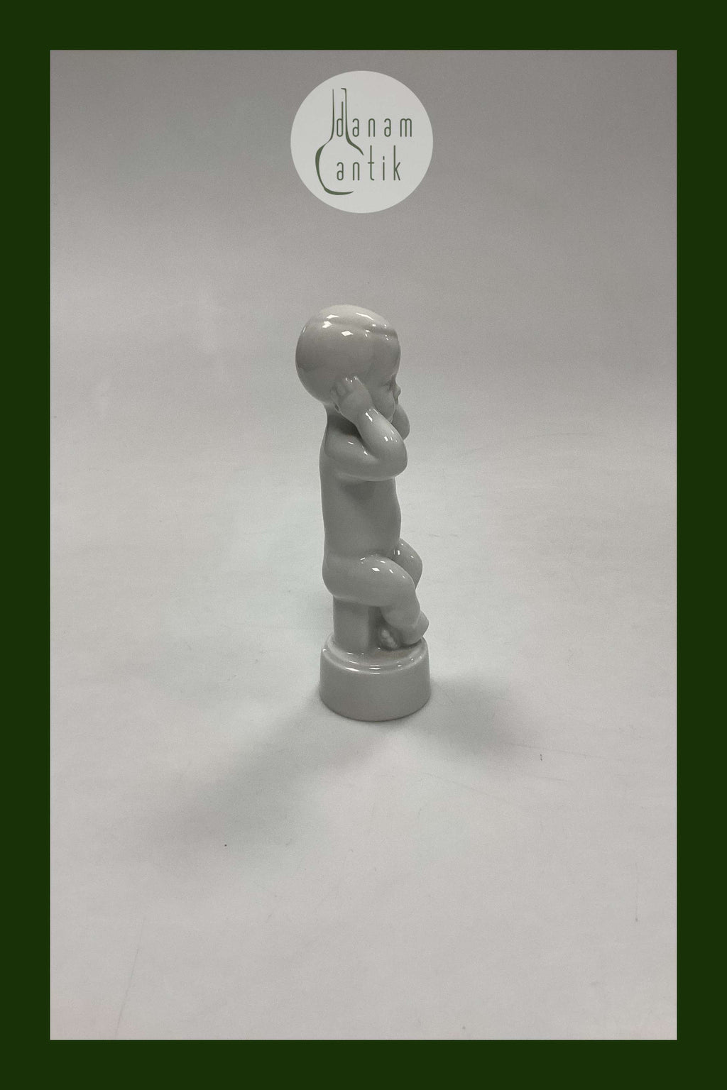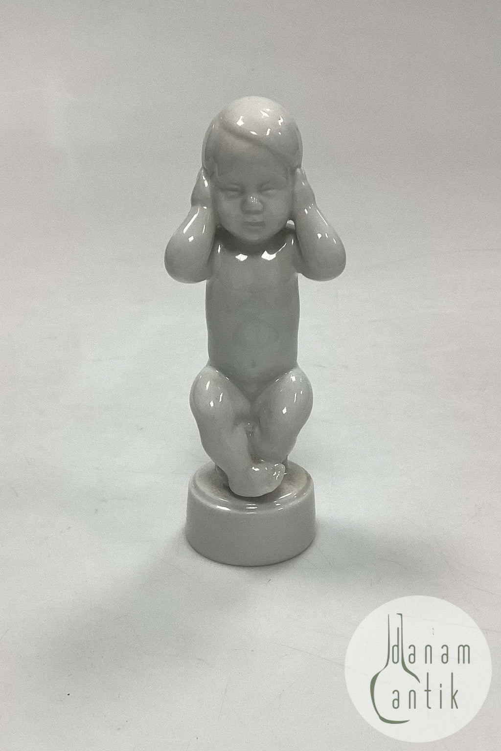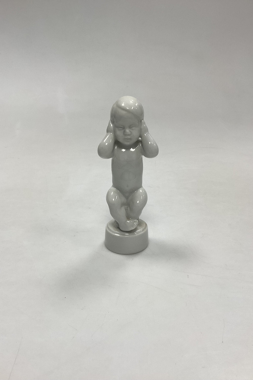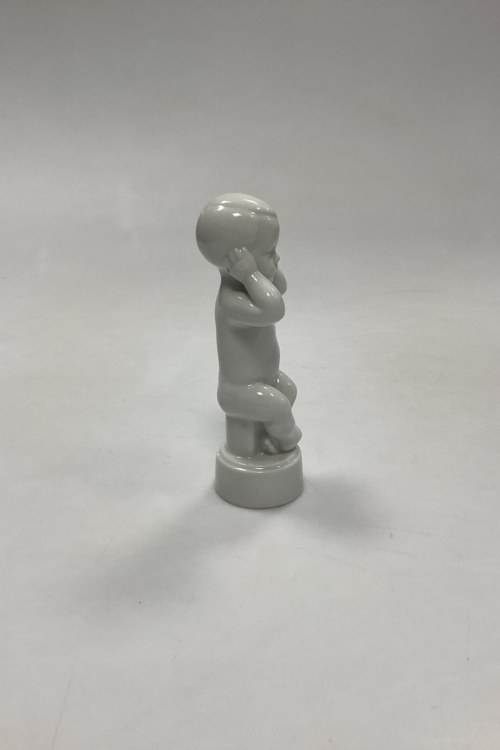 Bing og Grøndahl Blanc de Chine figur - Ikke Høre No. 2496. En af de 3 dyder; ikke se, ikke høre, ikke tale. Designet af Svend Lindhart.