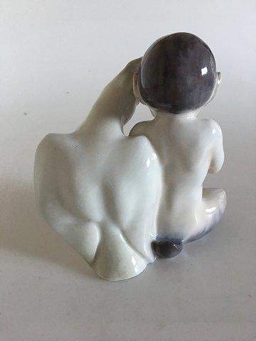 ロイヤルコペンハーゲン ファウンとオウムのフィギュア No2424ブラック16.5 cm H. 14 cm W。
