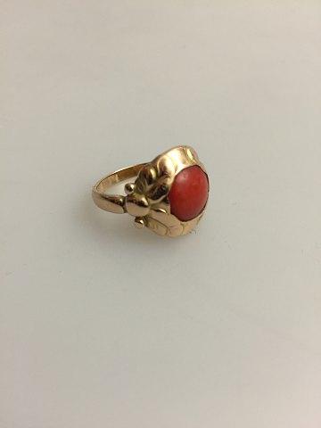 Georg Jensen 14K Gold Ring No 111 with Red Stone.Ring size 53.Weighs 4,3 gram.