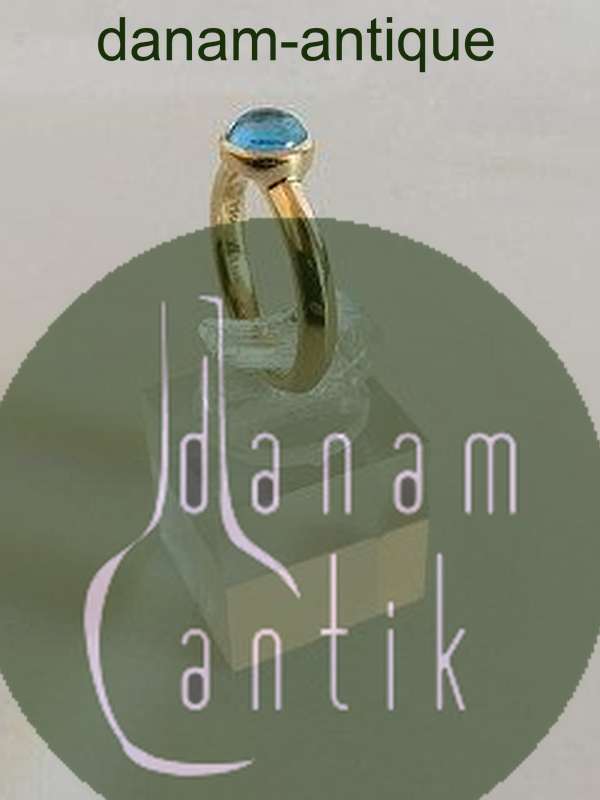 ジョージ ジェンセン ブルートパーズ 18K ゴールド リング。リングサイズ51。重さ5.3g。