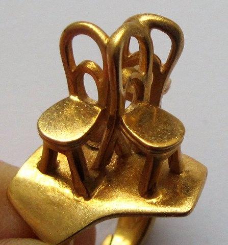 Georg Jensen ゴールドプレート リング。エキサイティングリング、モチーフは3脚。良好な状態です。リングのサイズは調整可能です。3.6cm、リングは1.6cmで、伸ばすことができます。