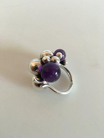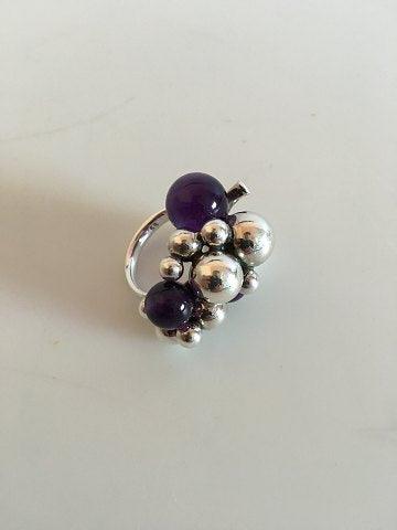 Georg Jensen Ring Oxidised Silver with Amethyst Stone.