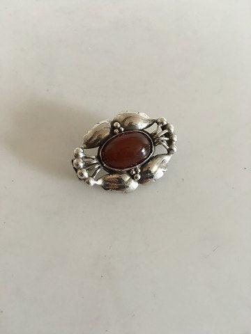 ジョージ ジェンセン シルバーブローチ No 80 琥珀の装飾3.1cmの大きさ。重さ7g。1908年から1914年まで。