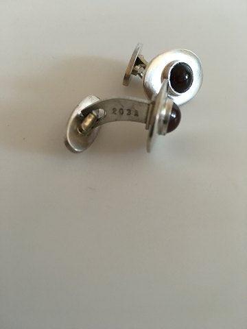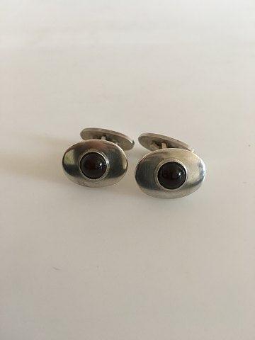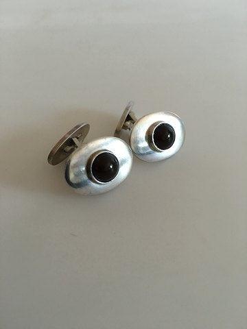 ジョージ ジェンセン スターリングシルバー カフスボタン No 203A ダークストーン付き1.7cm。総重量は13gです。1945年以降から。