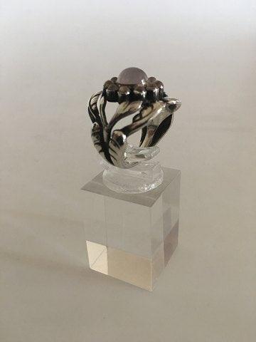 ジョージ ジェンセン スターリング シルバー リング No10 ピンク クォーツリングサイズ50。重さ7.4g。1945年以降に生産されたもの。