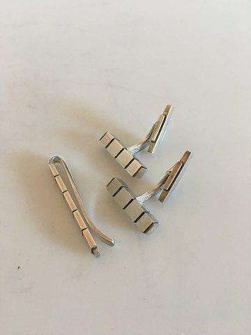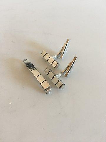 ジョージ ジェンセン スターリング シルバー カフリンクス No 64 とタイピン No 64B のセット。1945年以降から。カフスボタンの長さ2.1cm、タイピンの長さ4cm、重さは合わせて21g。