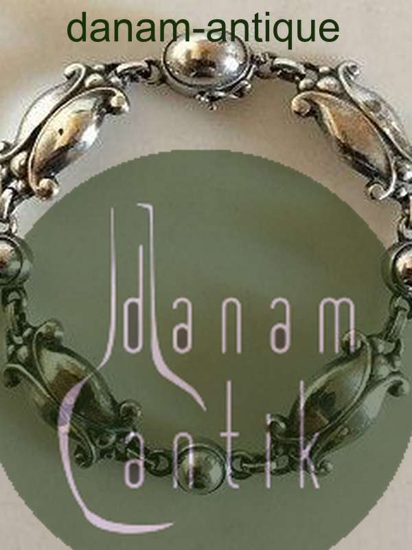 ジョージ ジェンセン ブレスレット No 11(830シルバー)。1914-1927年製、フランス輸入切手付き、全長18cm、重さ16g。