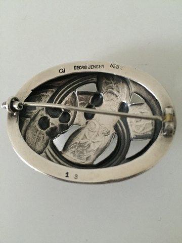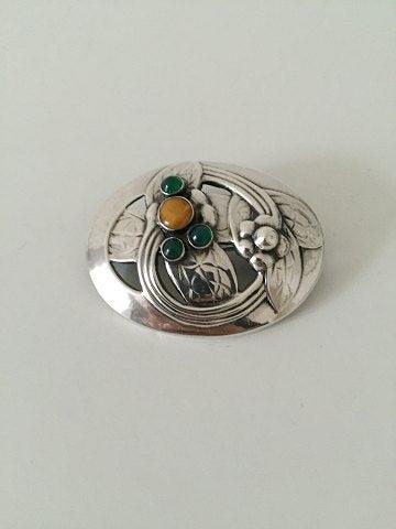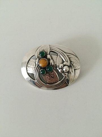 ジョージ ジェンセン(Georg Jensen)シルバーブローチ アンバーとグリーンストーン No 13 1904-1914年製