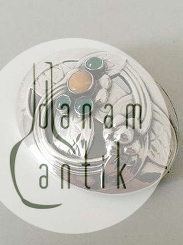 ジョージ・ジェンセン 銀製ブローチ 琥珀と緑色の石付き No 13 1904-1914年製。サイズは5cm×3.9cmです。重さは11gです。