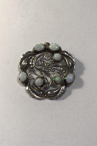 Georg Jensen Sterling Silver Brooch No 159 Opal Measures Diam 4.7 cm Weight 16.6 gr.