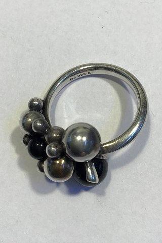 Georg Jensen Sterling Silver Ring Moonlight Grapes Onyx Ring Size 59 Weight 7.9 gr.