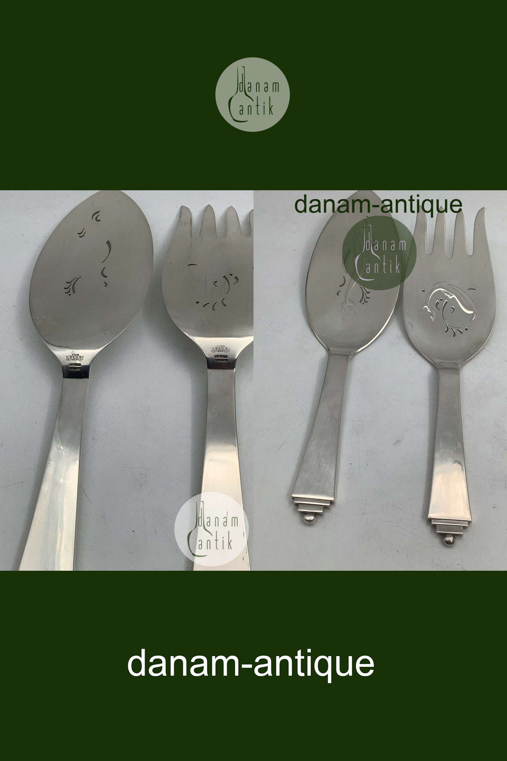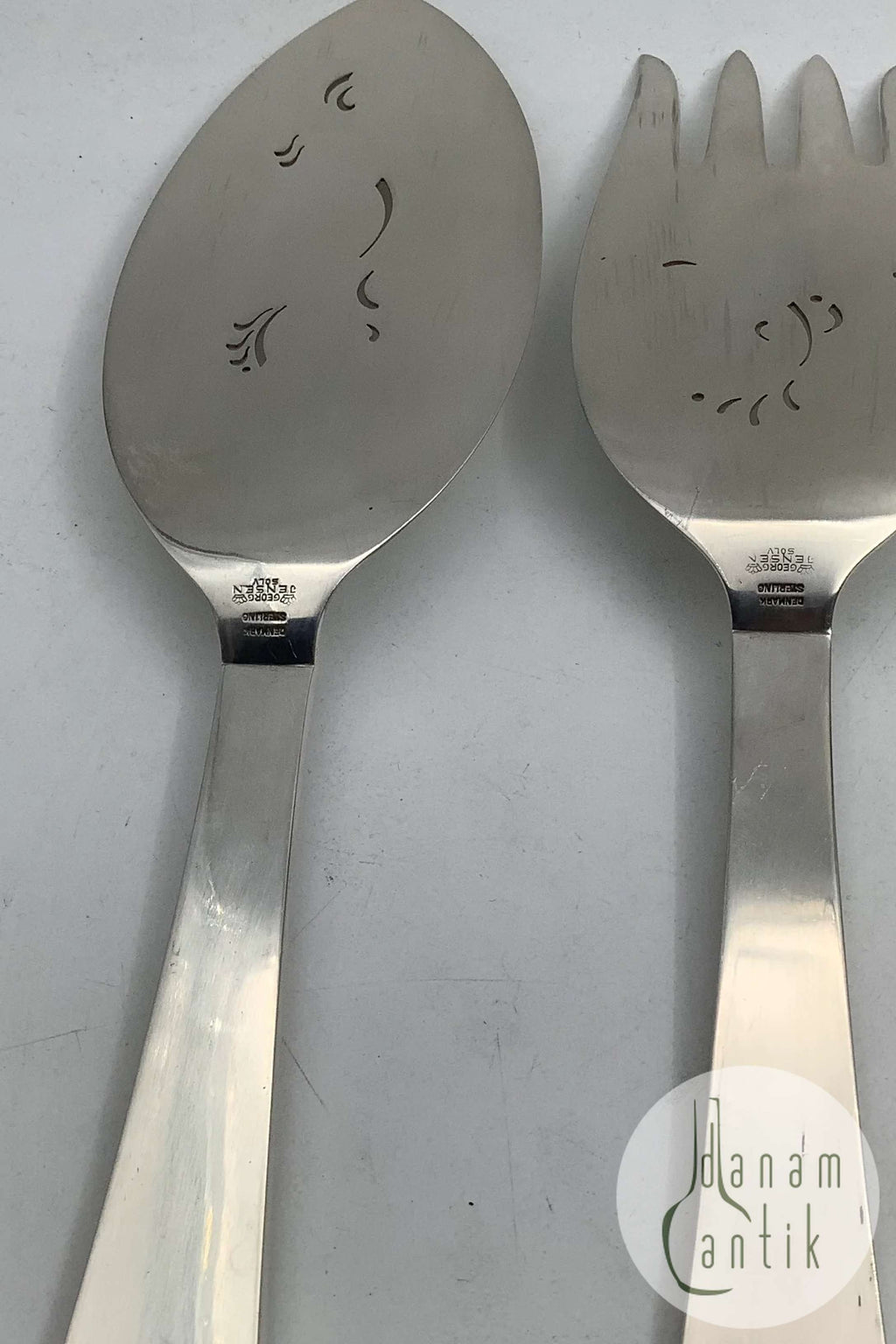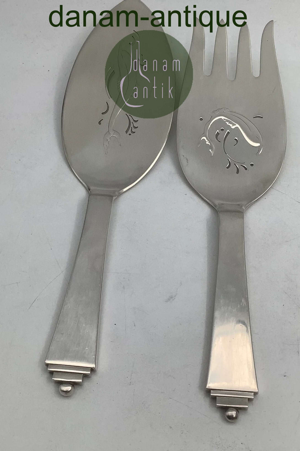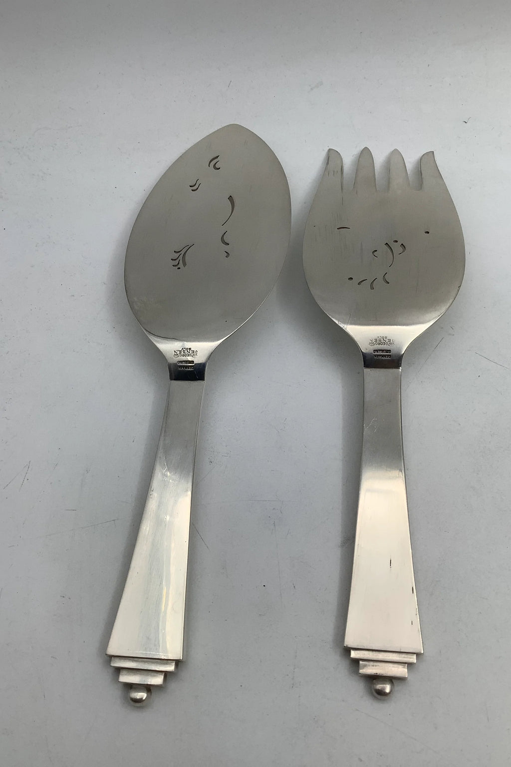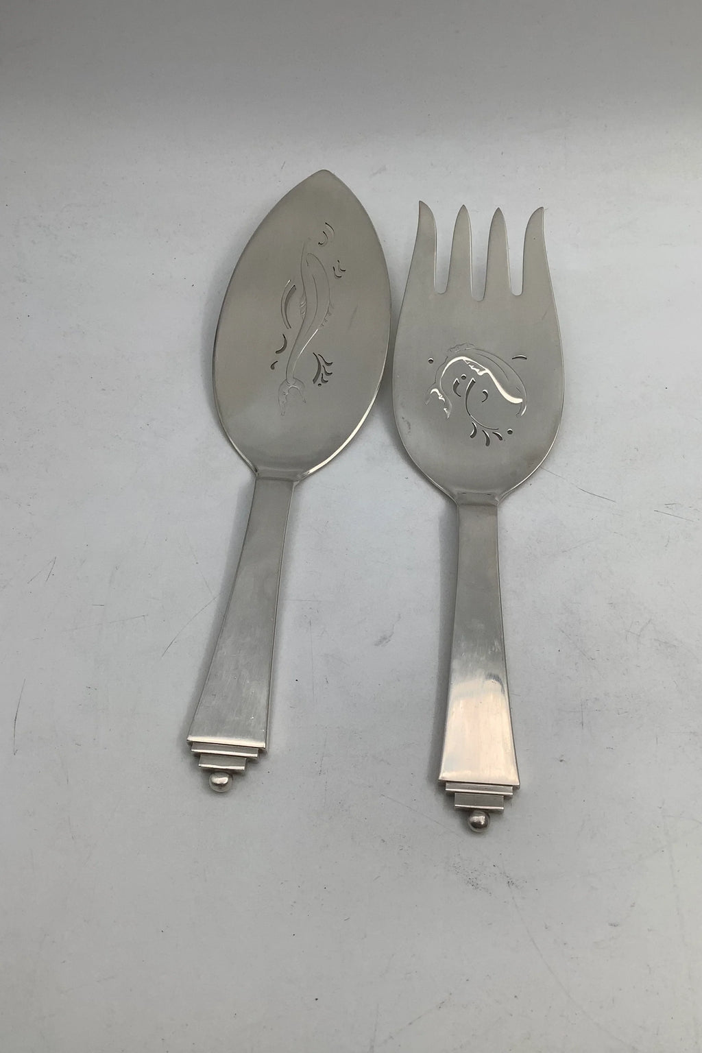 Georg Jensen Sterling Sølv Pyramide Fiskeanrettersæt No 231Måler 24.5 cm + 23 cm Fra 1945-1951